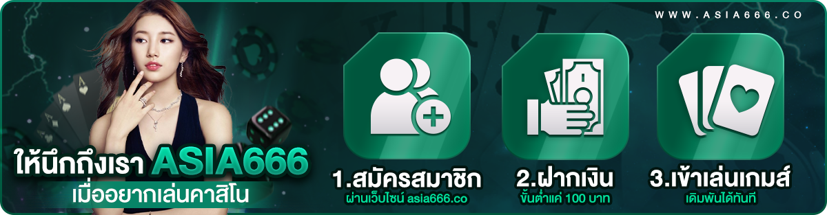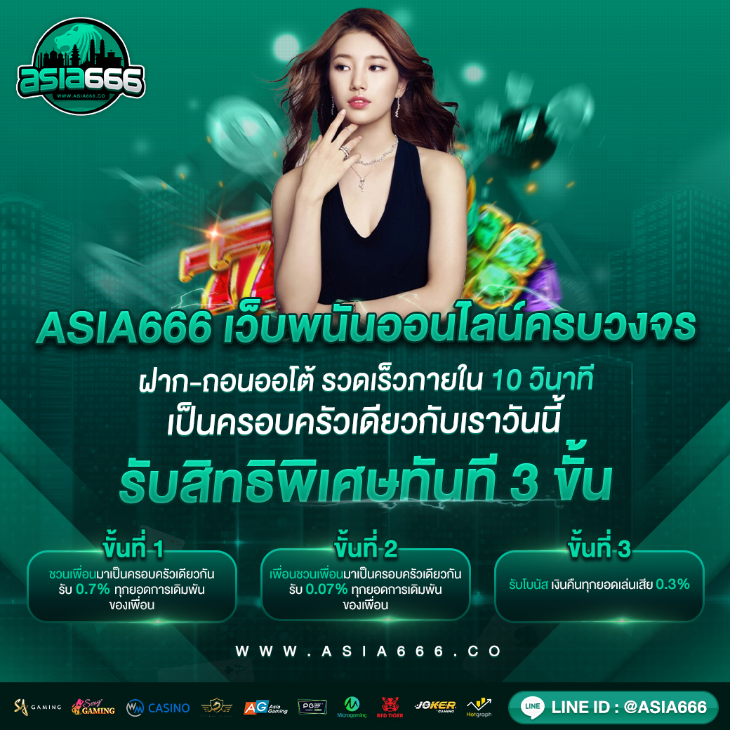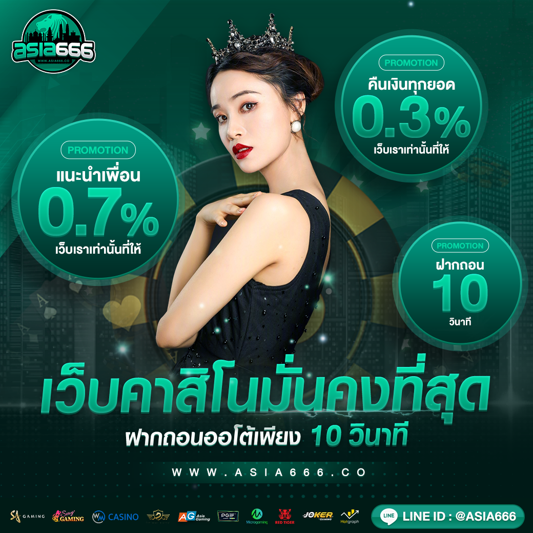 ถ้าคุณกำลังมองหาประสบการณ์การเล่นพนันออนไลน์ที่สมจริงและครบวงจร ASIA666 คือคำตอบที่คุณตามหา ไม่ใช่แค่เว็บพนันธรรมดา แต่ที่นี่คือโลกแห่งความตื่นเต้นที่รวมทุกเกมคาสิโนสดไว้ในที่เดียว ไม่ว่าคุณจะชอบเกมไพ่คลาสสิกอย่างบาคาร่าและโป๊กเกอร์ หรือหลงใหลในความเร้าใจของสล็อตออนไลน์และรูเล็ต ทุกเกมถูกรวบรวมมาไว้ที่นี่เพื่อให้คุณได้สัมผัสความสนุกแบบไม่มีขีดจำกัด